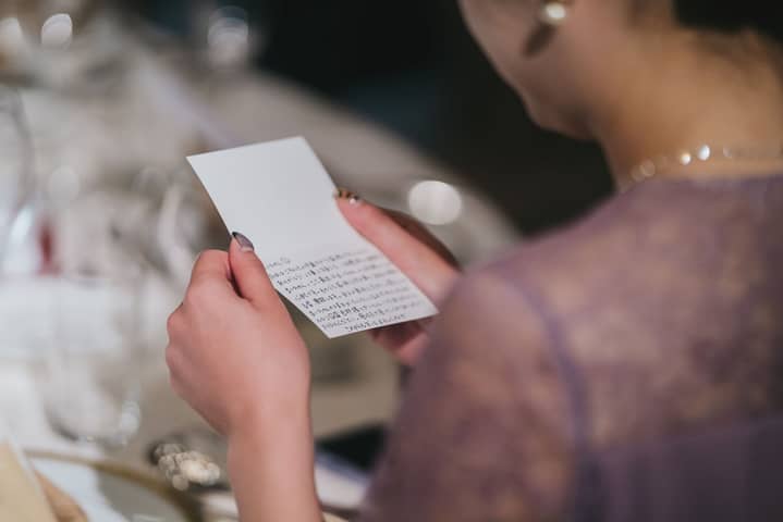 ゲストが会場でお待ちの間読んでいただけるように、席札にお二人からのメッセージを準備されました。
