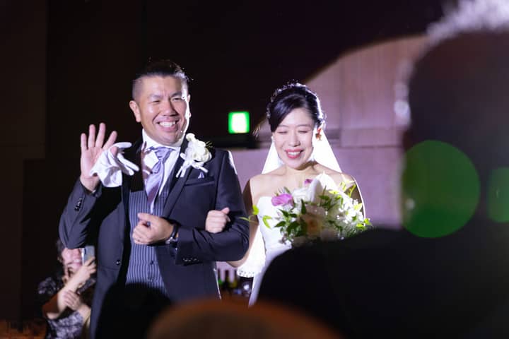 和装からウェディングドレスにお着換えされての再入場。