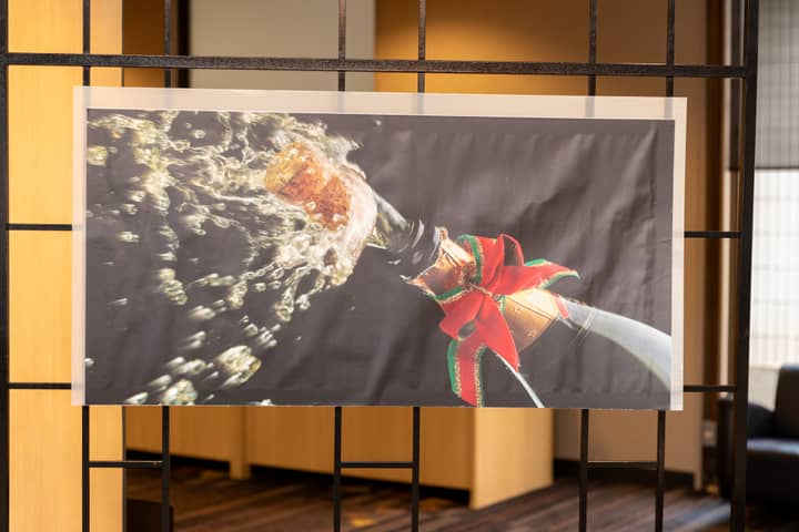 サーベランスされたシャンパンはお二人の元へ。